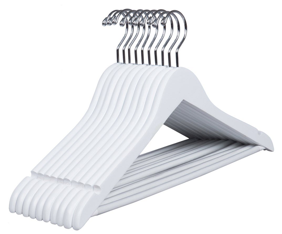 Solid Wooden Hangers Wood Suit Coat Hanger, White Color Smooth Finished with Non-Slip Bar